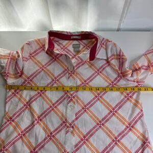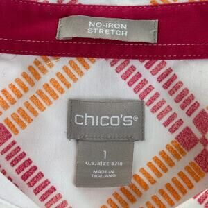 Chico's Pink Orange Diamond Plaid Button Up Blouse Womens Size 1 US 8/10 No Iron
