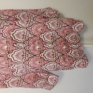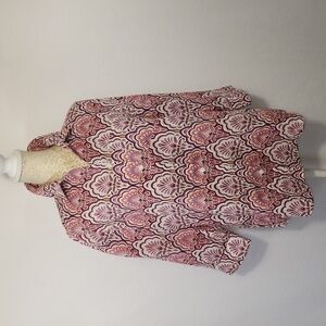 Chico's Pink Paisley Print 3/4 Sleeve Button Down 100% Linen Button Cuff Top