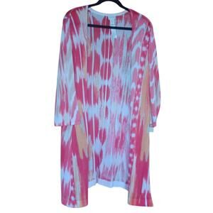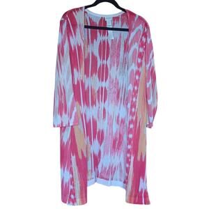 Chicos Pink White Beige Kimono Swim Suit Cover Outfit Topper Open Cardigan Women's XL