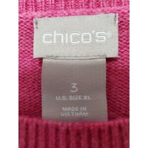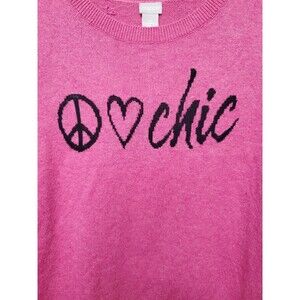This is a Chico's Pink Wool/Cashmere Blend Peace Love Chic Crew Neck Sweater Size 3 (XL)