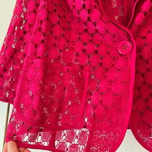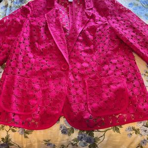 Chico's Pink/Fuchsia Crochet Blazer - 3/4 Length Sleeves - Size 1