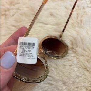 These chic sunglasses from Chico's feature a stylish round frame in a delicate pink hue, complemented by brown-tinted lenses. The minimalist design and lightweight construction make them a versatile accessory for any fashion-forward look.