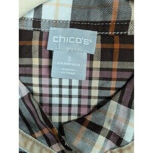 Chicos Plaid Ruffle Front Top Blouse Womens Size 3 16 18
