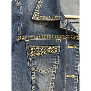 Chico's Platinum Beadazzled Stretch Jean Jacket Studded Bling Crop 0/Small