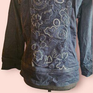 Chico's Platinum Dark Wash Denim Jacket embroidered beaded boho country western