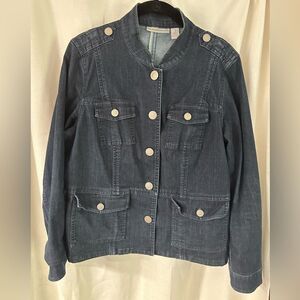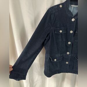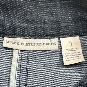Chico’s Platinum Dark Wash Jean Jacket Women's Sz 1 (8/M), Stretch Denim
