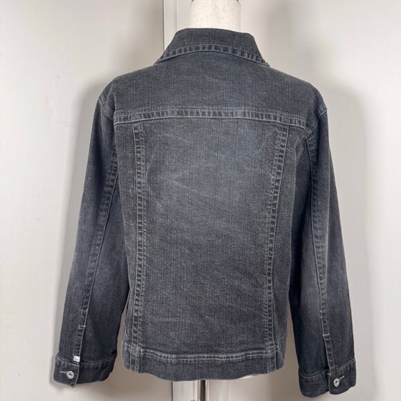 Chicos Platinum Denim Black Gray Jeans Jacket Boxy Whimsigoth Y2K Casual sz 2/L