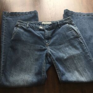 Measured Flat: Waist Side to Side: 17", Rise: 9 1/2", Inseam: 30 1/2", Waist to Hem: 40"