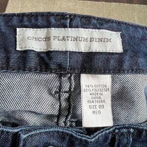Chico's Platinum Denim Jeans Women's 00 (2) Mid Rise Slim Straight Leg Dark Wash