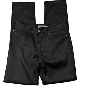 Chico's Platinum Denim Pants .5 Womens Small 6 Black Straight Mid Rise Pull On