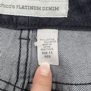 Chico's Platinum Denim Size 1.5 (10) Blue Stretch Jeans Dark Wash.