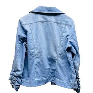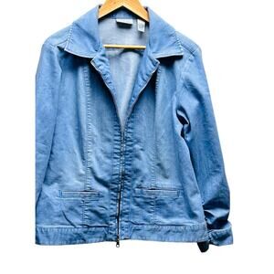 Chico’s Platinum Denim Style Jacket Size 3 XL Zip Up Lightweight Blue Casual