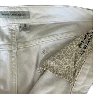 Chico's Platinum Denim Women's Size 3 (16) Ultimate Fit Slim Leg Beige Embossed