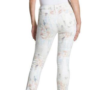 Chico's Platinum Diffused Floral Jeggings with Raw Folded Hem