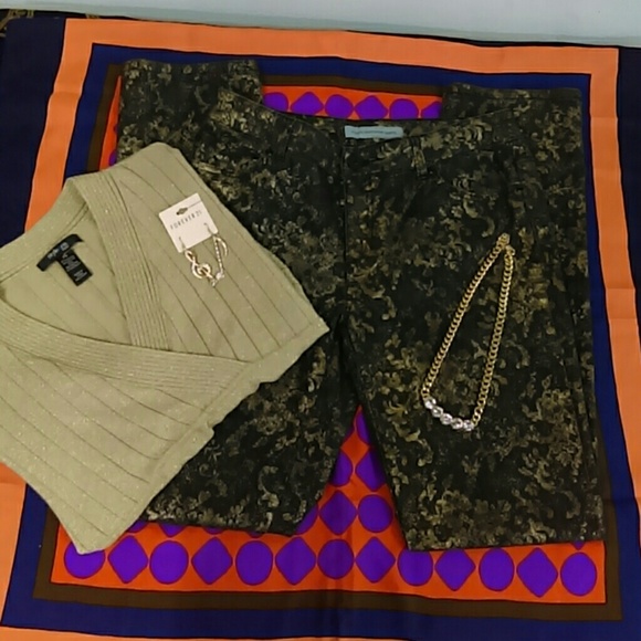 Now you know Chico's sizes run a little different from other designers. A 0 in Chico's will fit a Sz. Small or Sz. 4. Gold foil makes these denim pants SUPER HOT!! Straight leg