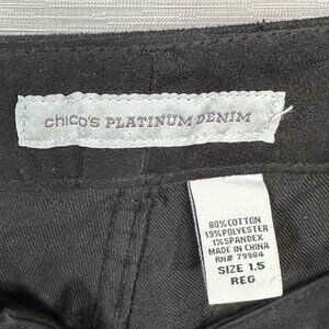Chicos Platinum Jeans Womens 10 Black Cotton Stretch Pockets Straight Pockets