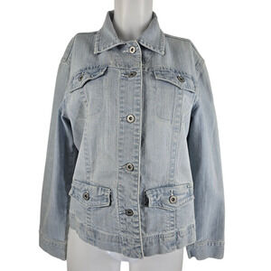 Chico's Platinum Light Denim Button Front Pockets Women's Jacket 1 - M