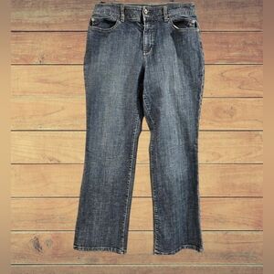 Chico's Platinum SZ 2/12 Mid Rise Embellished Straight Leg Stretch Jeans