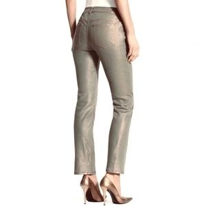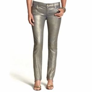 Chico’s Platinum Shimmering Gold Metallic Jeans Straight Leg Stretchy Size XS/2