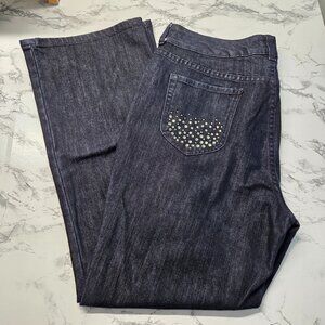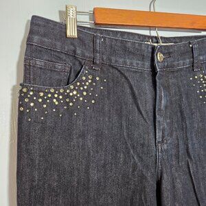 Chico's Platinum Size 2 Short Dark Wash Denim Blue Gem Embellished Jeans