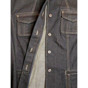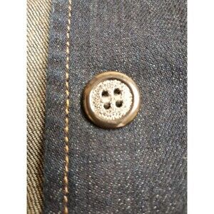 Chico’s Platinum Sz L Blue Dark Wash Denim Jacket - Pockets Covered Buttons NWOT