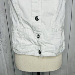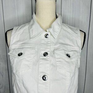 Chico's Platinum White Denim Vest Chicos Sz 0 (4) Button Up Casual Rhinestone