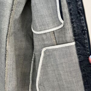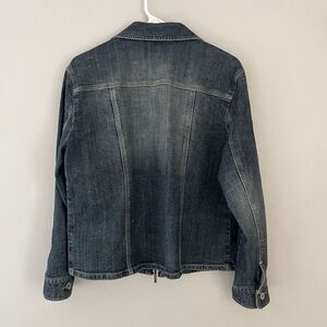 Chicos Platinum Womens Blue Jean Jacket Medium Full Zip Embroidered Floral Vtg