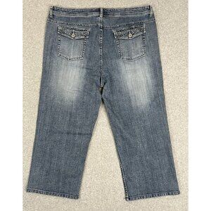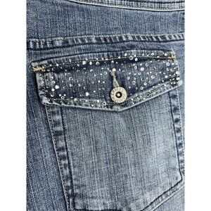 Chico’s Platinum Women’s Capri Jeans Size 3 Rhinestone Pocket Stretch Denim