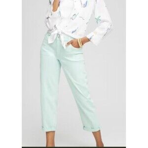 The Chico's Platinum Women's Denim Iced Mint Jeans in size 3 (16/18) are a stylish and comfortable choice for women. These jeans feature a zip and button closure, a straight style with a 27" inseam, and a 5-pocket design for added convenience. Made from a blend of spandex and cotton, the denim fabric is light washed and offers a regular fit. The icy mint color is perfect for the summer, fall, and spring seasons, and the jeans are machine washable for easy care. Ideal for everyday wear, these Chico's Platinum Denim jeans are a versatile addition to any wardrobe.