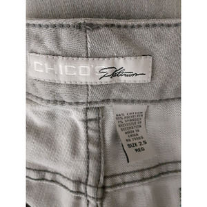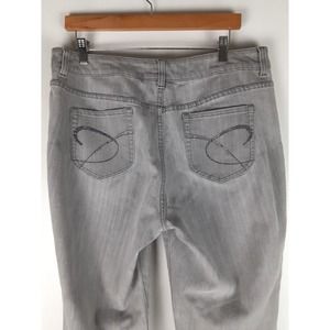 Chicos Platinum Women's Gray Straight Leg Denim Jeans Stretch Rhinestone 14 2.5