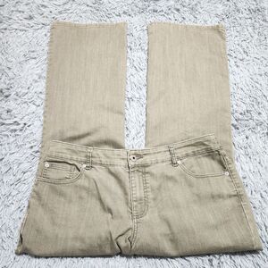 Condition: Used in good overall condition. These are a brown dark tan and have some hints of green in the color depending on the angle you look at the jeans. Chicos Size 2 equals a US Size 12. See photos for condition of garment. See photos for measurements. Please ensure measurements will fit you prior to ordering.