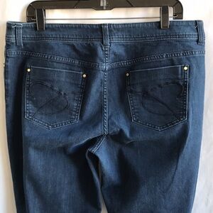 Chico’s Platinum dark wash straight leg jeans. Chico’s size 2.5 (12/14 elsewhere). Good preowned condition.