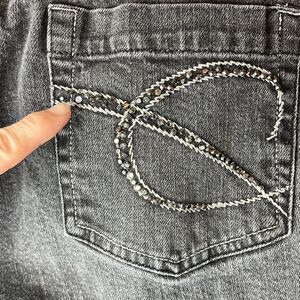 Chico’s Platinum Women’s Black Jeans size 0.5 REG or 6 in regular sizing, Rhinestone Pockets, right back pocket missing a rhinestone. You can see in pics