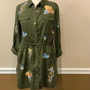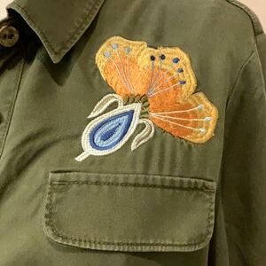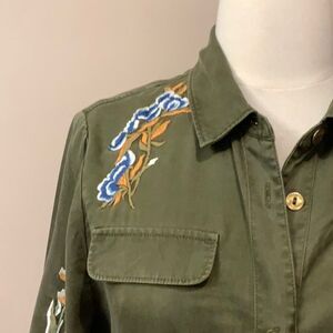 Chico’s Playful Floral Embroidered Anorak Green Jacket MP Medium Petite