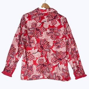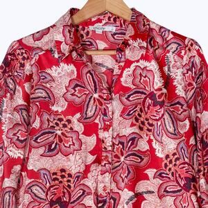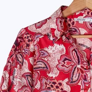 Chico's Pleated Pintuck Blouse Modern Dash Floral Print Women's 8 Ruffle Flowy