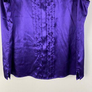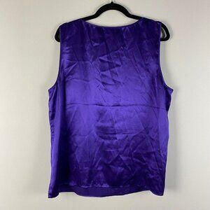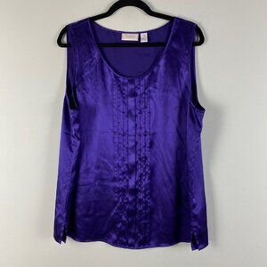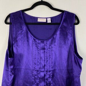 Chicos Pleated Satin Tank Top Womens 3 US XL Purple Scoop Neck Stretch