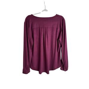 Chico’s Plum Purple Faux Suede Ruffle Button Shirt Long Sleeve Top Size 1 Medium