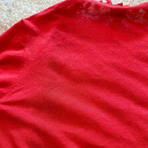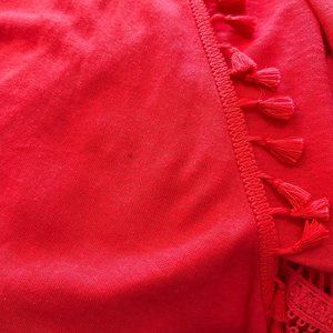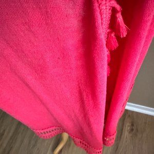 Chicos Pom Pom Fringe Watermelon Red Cardigan Size 2 (L)