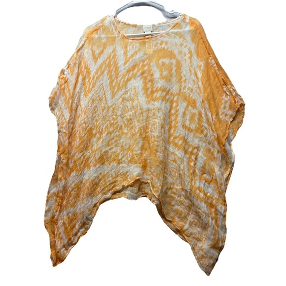 Chico's Poncho Ruana L/XL Orange Tie Dye Lightweight 100% Linen Boho