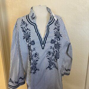 Chico's Poplin Embroidered Stripe Tunic