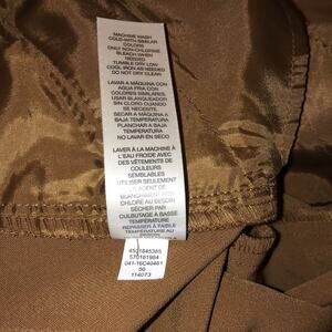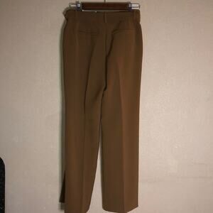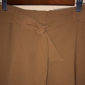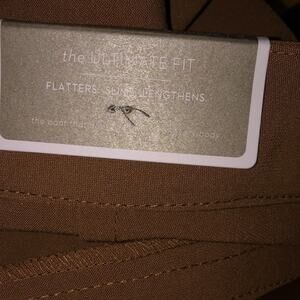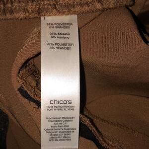 This is a very pretty pair of Chico's tan ultimate fit flatters slims lengthens. They have two open pockets on the front (still factory sealed), two open pockets on the rear (still factory sealed). It has a hook and zipper closure with matching tie belt. And, inside button for flap. They are new with tags and size small.