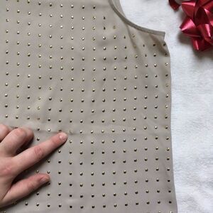Chico’s Beaded Sleeveless Beige Blouse Top. Size: 1 ( conventional size : medium / 8). Excellent used condition. Has small mark - hardly noticeable ( see last photo). Boat neck. Embellished front. Sleeveless. Slightly sheer. Measurements approximately while laying flat: Armpit to armpit: 20”. Length: 26.5” (front) 29” (back). Reasonable offers welcome. Smoke free and pet free home.
