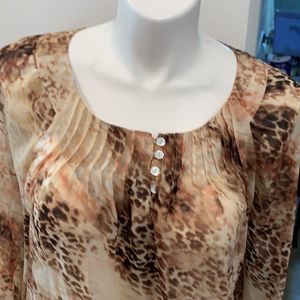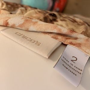 Chico’s 🦒 Print, Button Sleeve, Floaty Summertime Blouse.