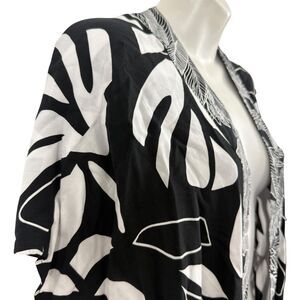 Chicos Printed Boarder Ruana Reversible Womens Open Kimono Jacket Black sz S / M