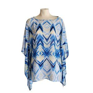 Chico’s Printed Crepe Poncho Top Abstract Tribal Blue Yellow Size S/M