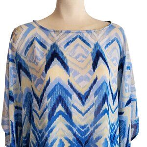 Chico’s Printed Crepe Poncho Top Abstract Tribal Blue Yellow Size Medium