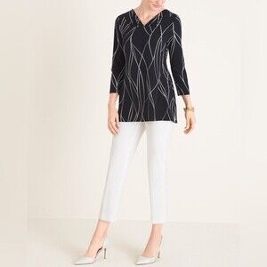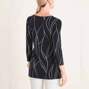 Chico's Printed Ruched-Neck Women's Top Blouse(Size M)