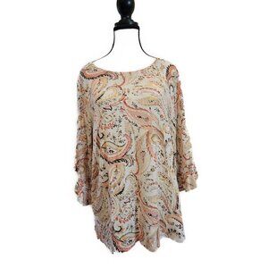 Chico's Printed Ruffle Elbow-Sleeve Top - sz Large (2)