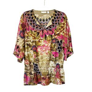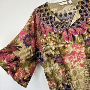 Chicos Printed Top Womens Size 2 US 12 Multicolor
