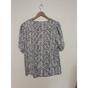 Chico’s Puff Sleeve Blouse 2 L Black White Chevron Stretch Knit Top Cotton Modal
